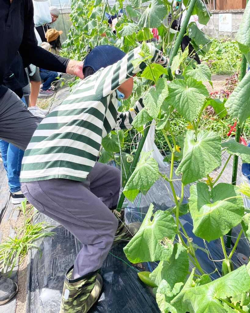 JAめぐみのさんにご協力いただき、夏野菜の収穫体験を行いました]。