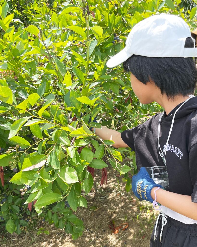 ブルーベリー・きゅうり・枝豆など、旬の農産物の収穫に加え、はちみつ教室も実施しました。
